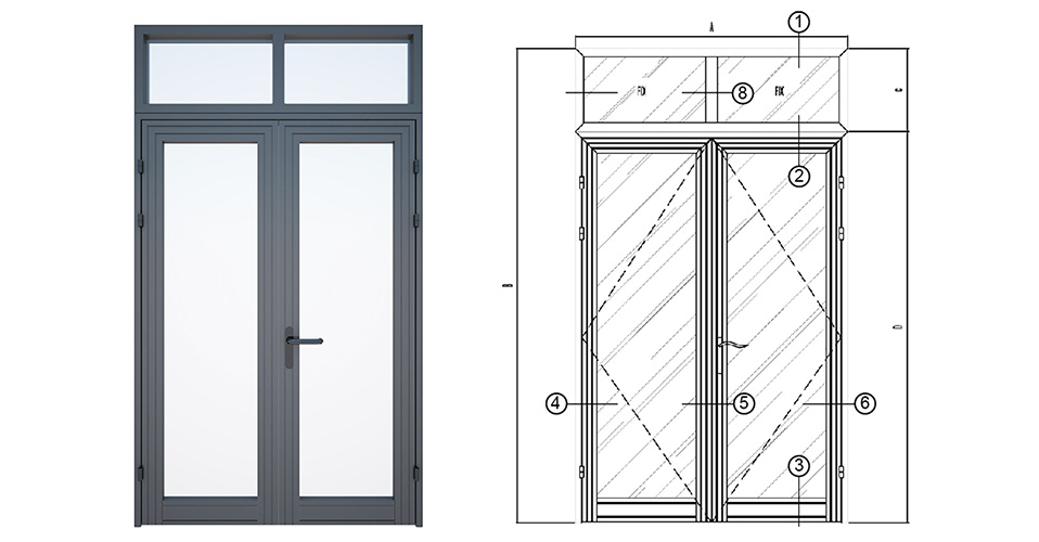Dưới đây là kích thước chuẩn của cửa đi 2 cánh bản lề 63 nhôm xingfa hệ 55, cùng theo dõi ngay nhé!